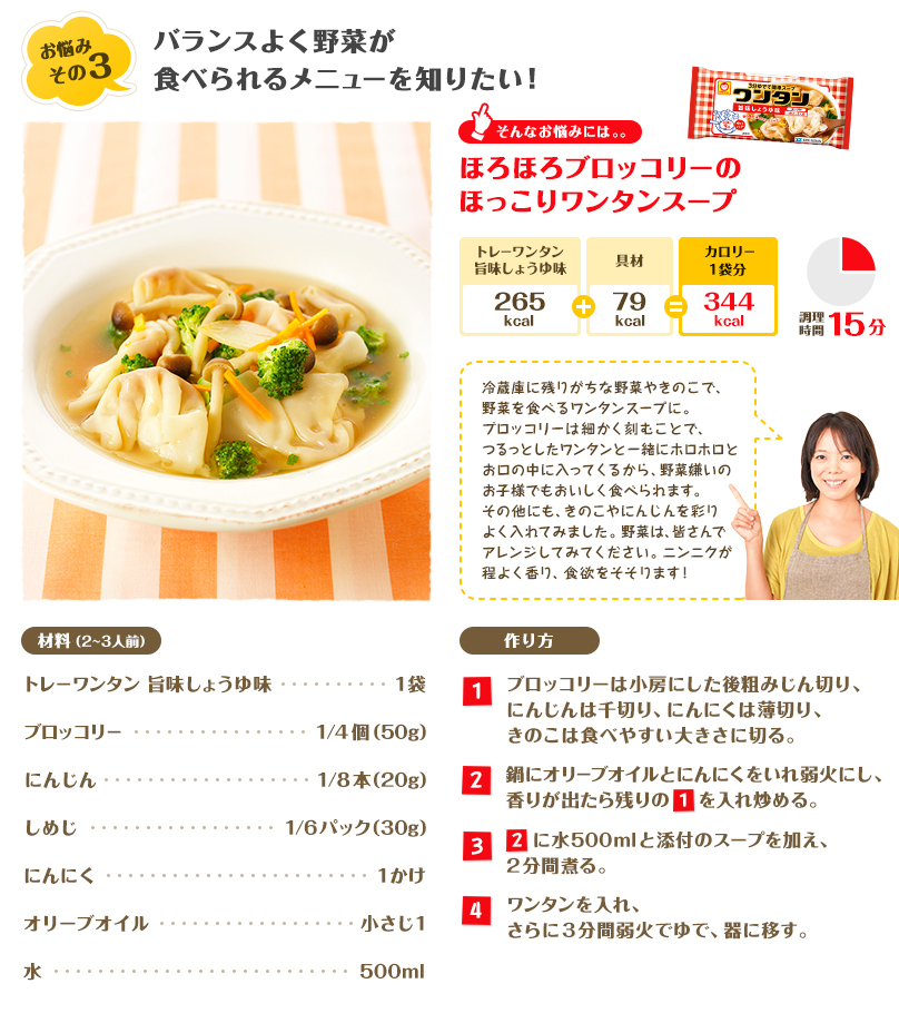 そんなお悩みには「ほろほろブロッコリーのほっこりワンタンスープ」